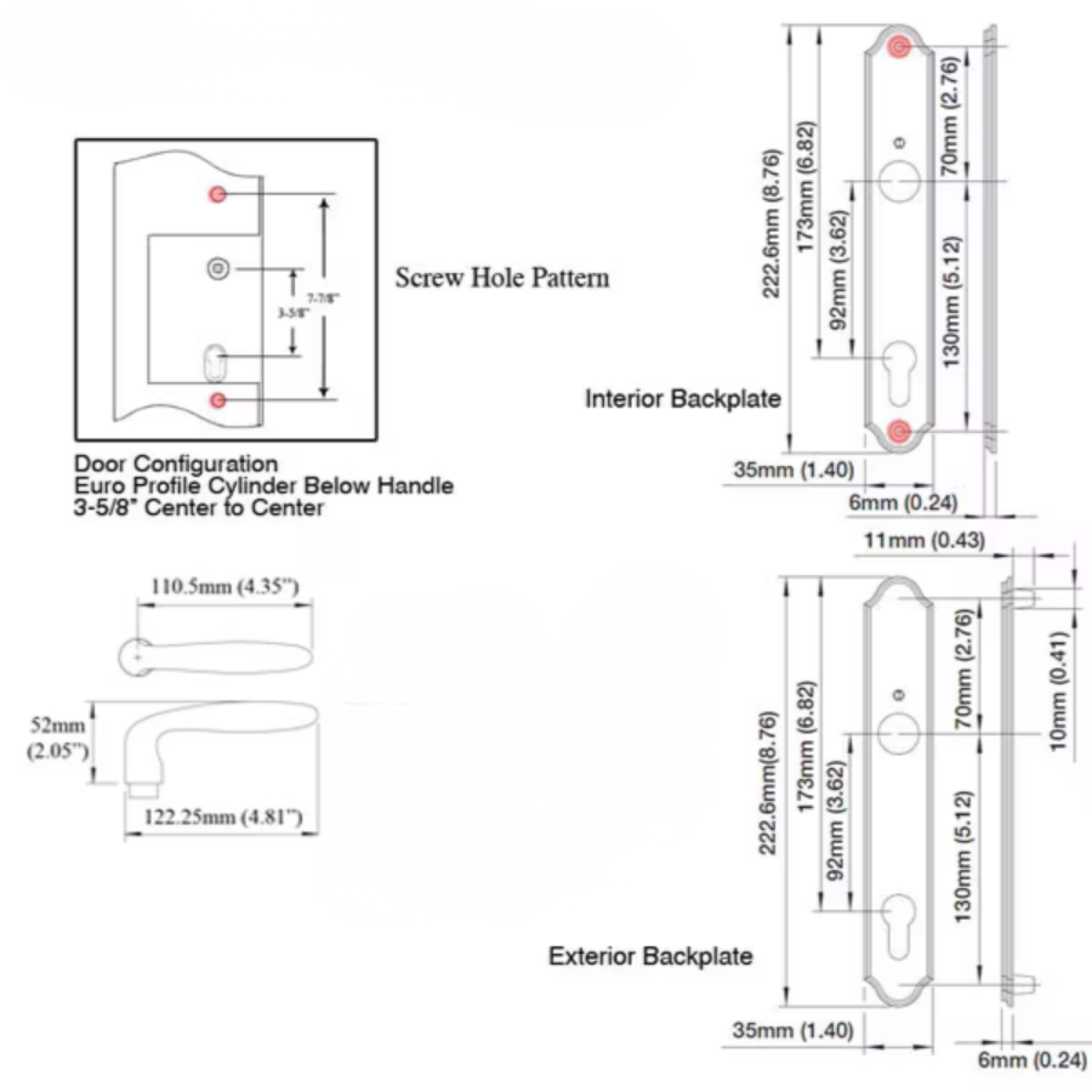 The set includes a 1.75" (44 mm) backplate, matching gasket, and 50 mm installation screws, ensuring a clean and secure fit.