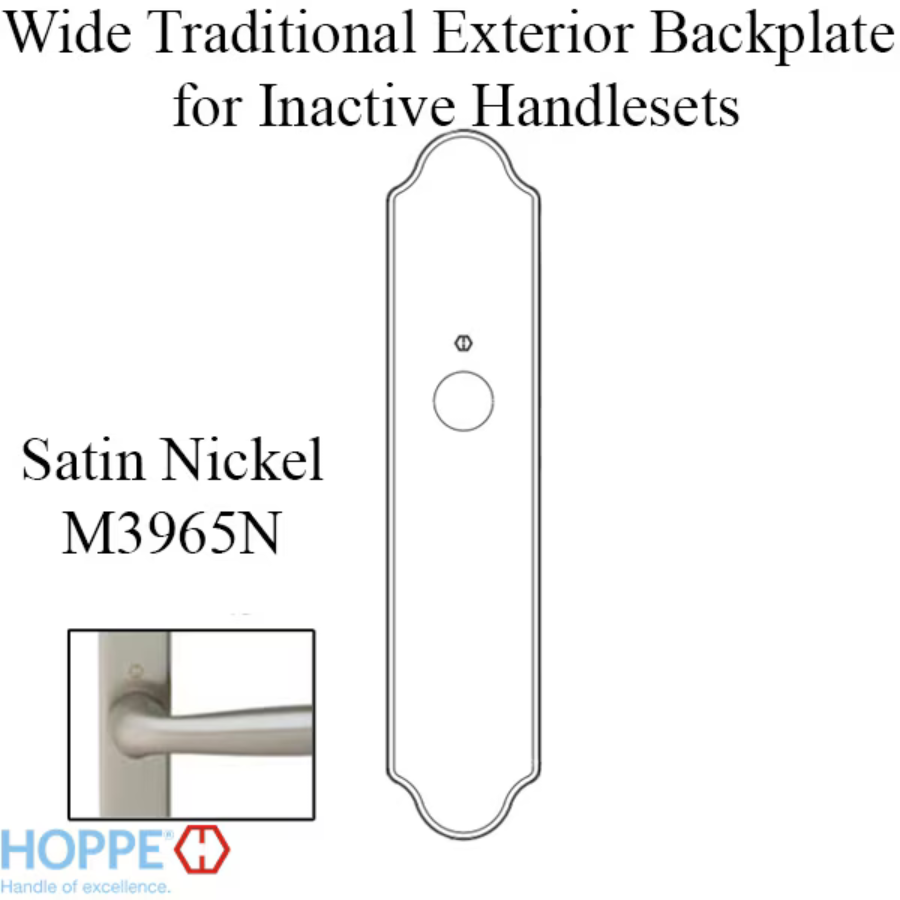 HOPPE WIDE TRADITIONAL EXTERIOR BACKPLATE M3965N FOR INACTIVE HANDLESETS - SATIN NICKEL