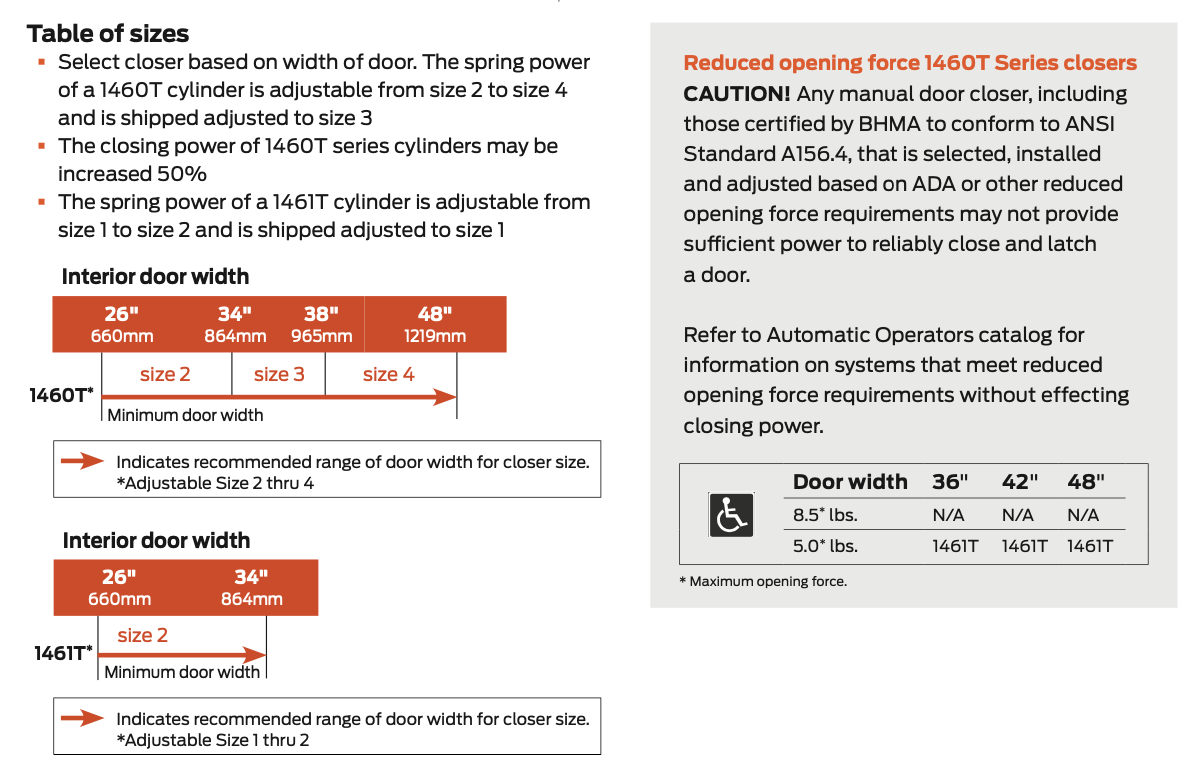 • ADA Compliance: Meets ADA reduced opening force requirements for accessible door operation in compliance with accessibility standards.