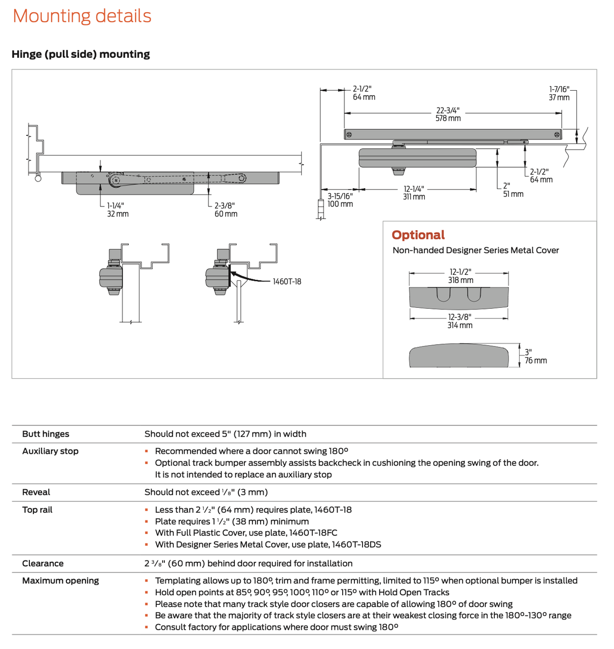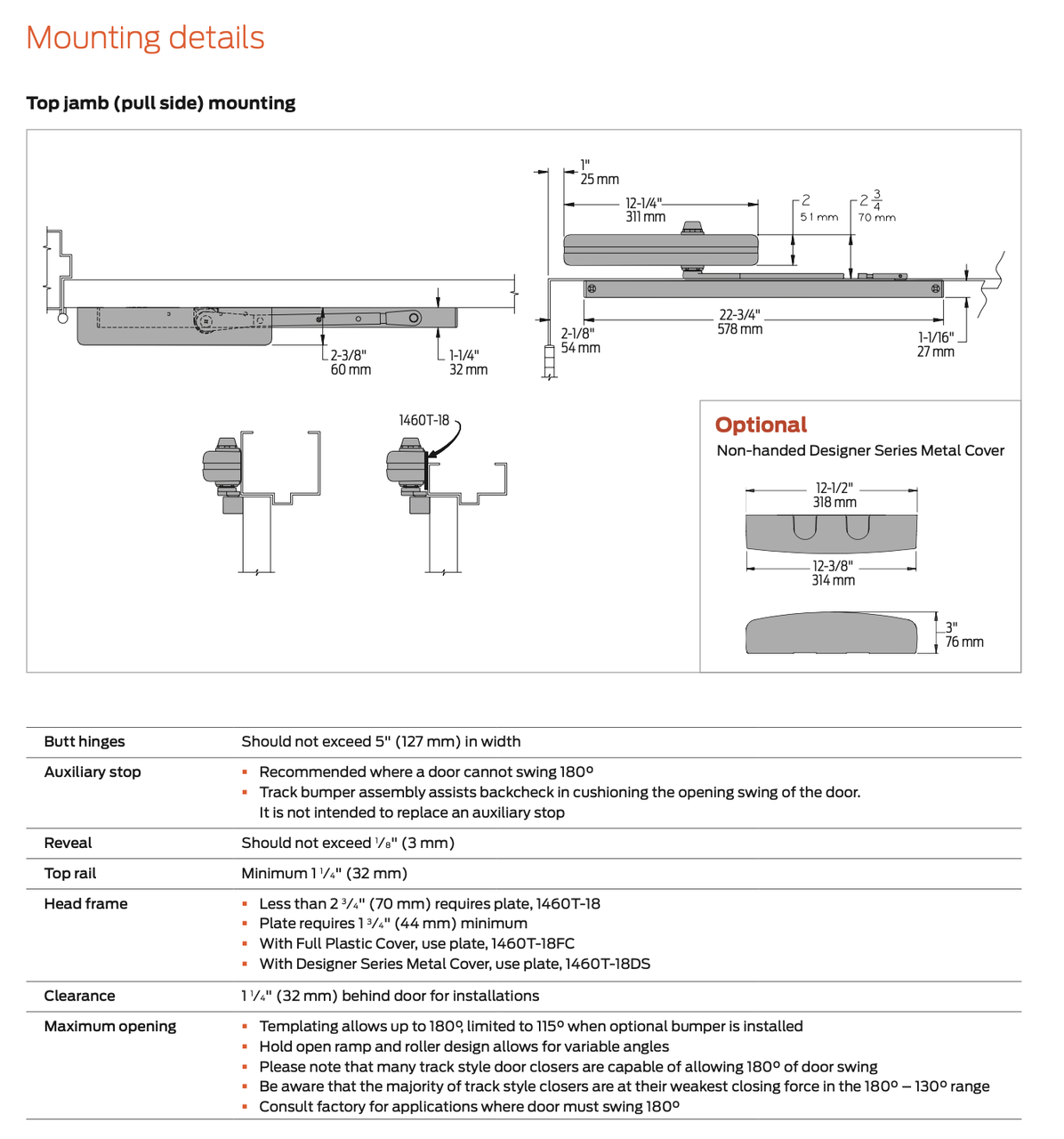 It installs quickly and accurately and offers a variety of options. It is cUL and UL listed for self-closing doors without hold-open, and it comes with a 30-year limited warranty.