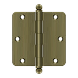 Deltana steel hinges with ball tips are a decorative alternative for indoor applications. They are come in an array of fine finishes with matching ball tips installed.