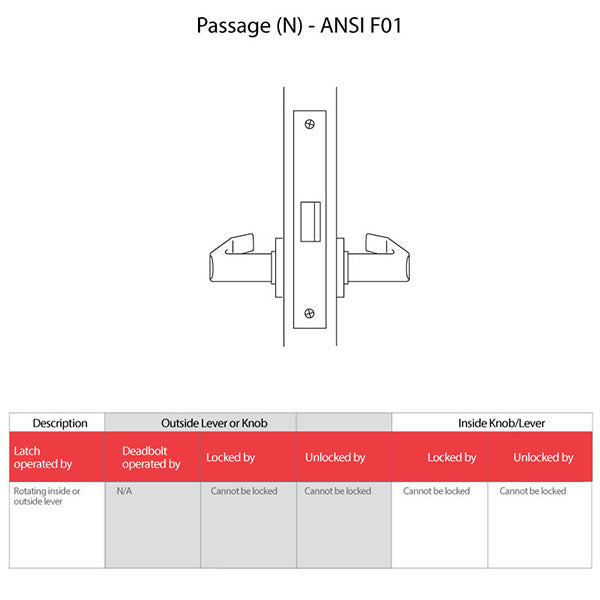 Best 45H0N Grade 1 Passage Mortise Lock, H Rose, Non-Keyed