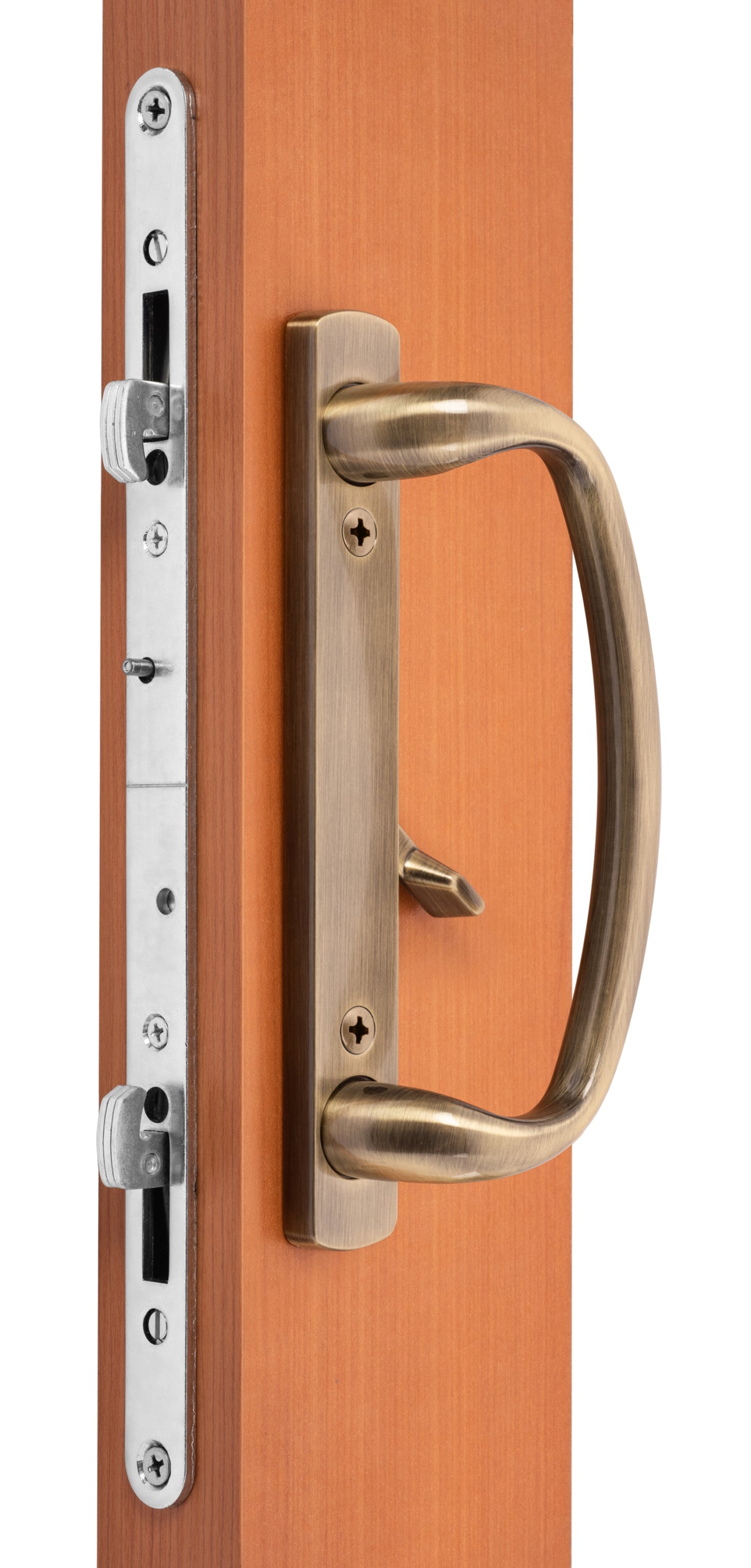 The Rockwell Charlotte handles are the traditional sliding door handles. It is a 2 piece construction handle and is available in a back to back C handle or with an exterior finger pull. The Charlotte sliding door handles have a good finger clearance but does have a profile height of 1.95 inches and may not clear all screen doors. They come standard in a privacy version but are also available in a limited edition with the keylocking cylinders preinstalled in the offset keylock position.