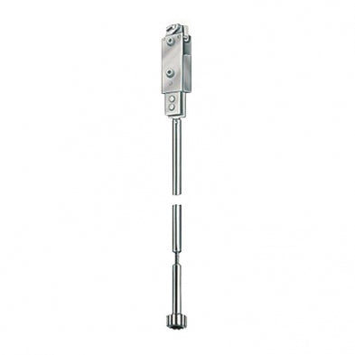 The Adams Rite 4085-02-IB Header Bolt provides a top door third locking point for pairs of doors. The bolt is mounted in the inactive leaf, and works in conjunction with an MS® pivoted bolt deadlock. When this header bolt is triggered by the pivoted bolt, it expands to center itself in its strike as it rises, which saves the keyholder the task of liining up the doors on their three separate strikes. A thumbturn of the key throws the counterbalanced bolt into the opposite door, thus kicking the positioner bolt into the header strike. The positioner bolt can be manually thrown before closing the active leaf.