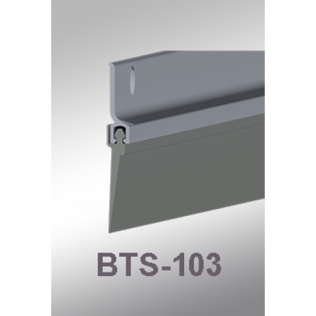 DETAILS: CAL-ROYAL BTS-103 DOOR BOTTOM SWEEP MADE OF EXTRUDED ALUMINUM RETAINER AND VINYL INSERT
