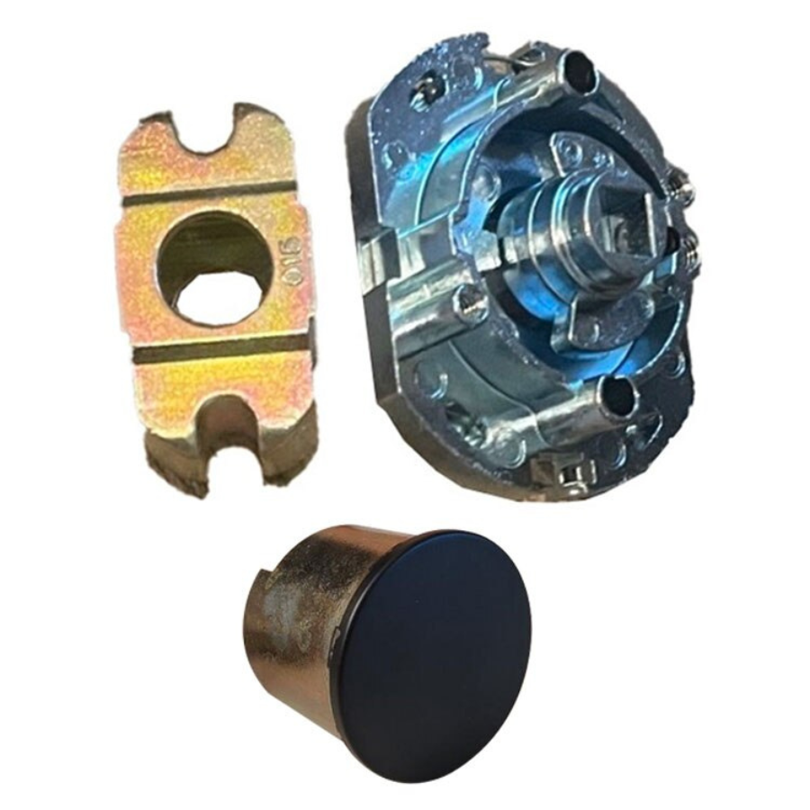Used with handle sets that have a thumblatch to open on the exterior side.