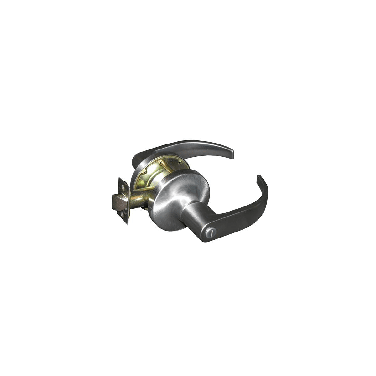 - Privacy Lock: Latch bolt operated by handles. Outside handle is locked by push button on inside handle. Rotating inside handle or closing door releases push button and frees outside handle. Inside handle is always free. Emergency release in outside handle unlocks door. (ANSI 76)