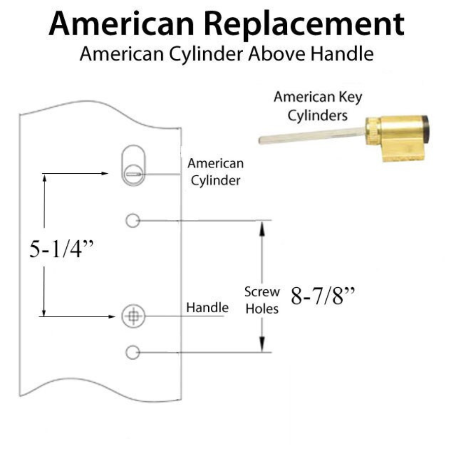 Handle Spacing (PZ): 5-1/4 inch (133.35 mm) = Center of Handle to Center of Key or Thumb-turn