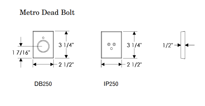 Metro Dead Bolt (DB250): 2 1/2" x 3 1/4"