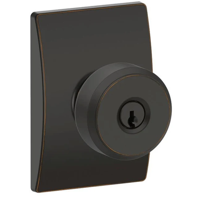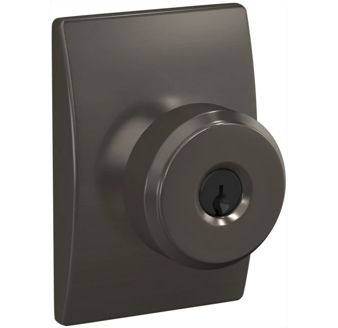 Keyed Entry (Single Cylinder) Function: Single cylinder keyed entry door hardware is locked and unlocked from the exterior using a key and can be locked and unlocked from the interior using the locking mechanism. Perfect for securing entrances, side doors, and anywhere else that needs a bit more security.