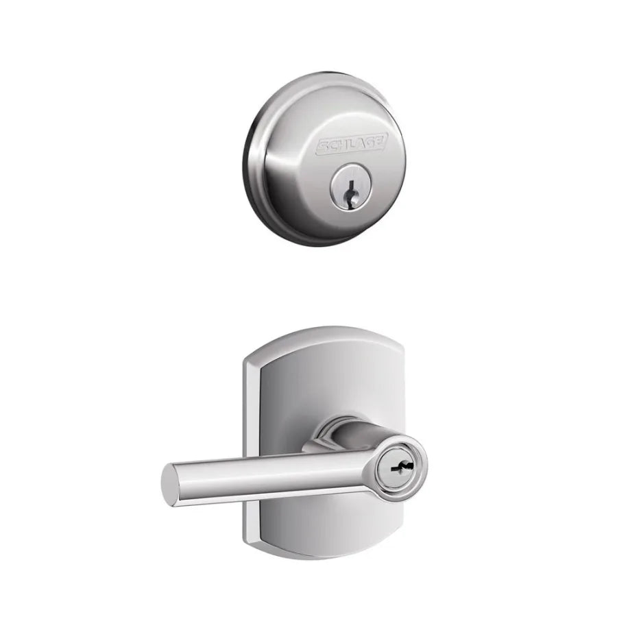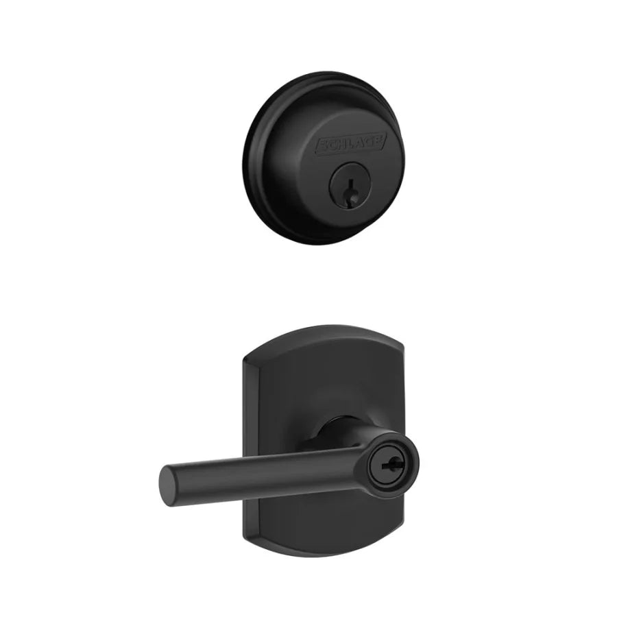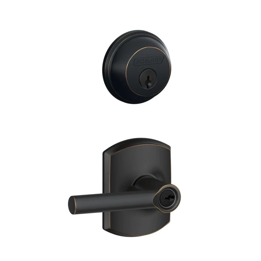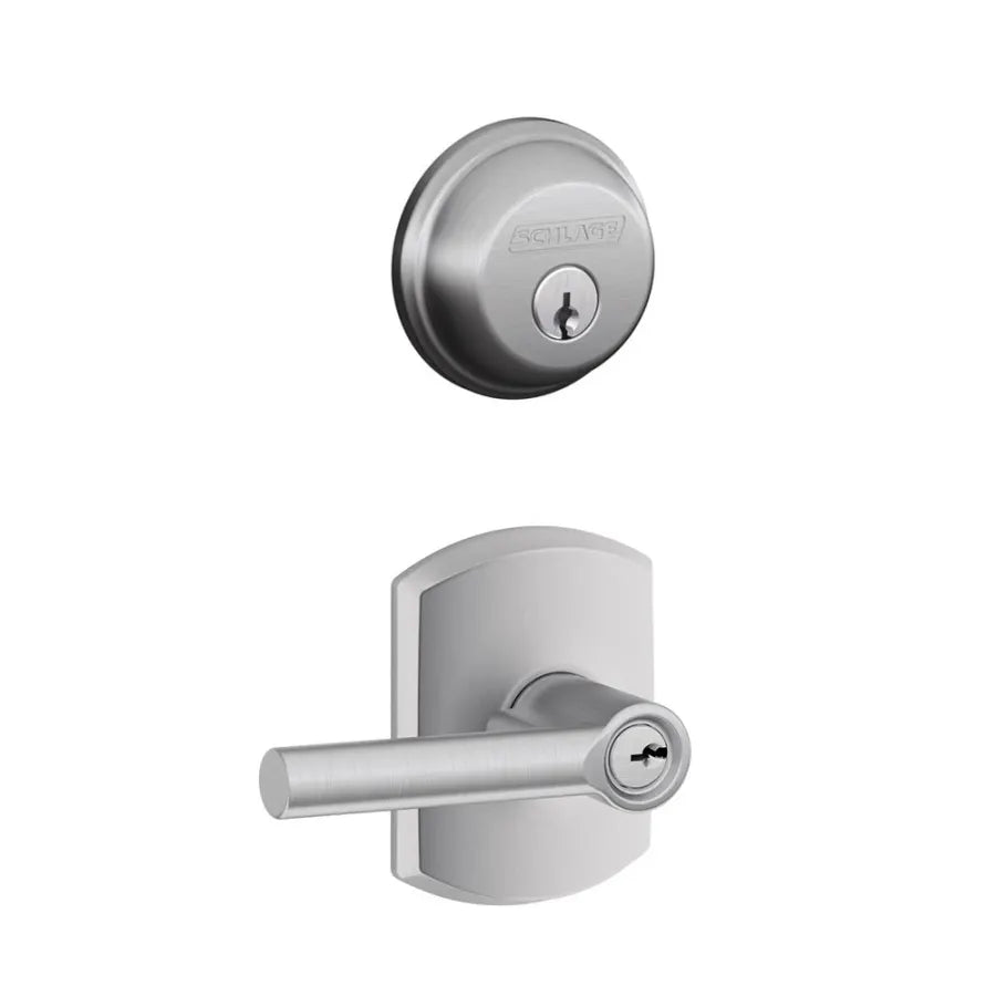 Schlage Broadway Single Cylinder Keyed Entry Door Lever Set and Deadbolt Combo with Greenwich Rose