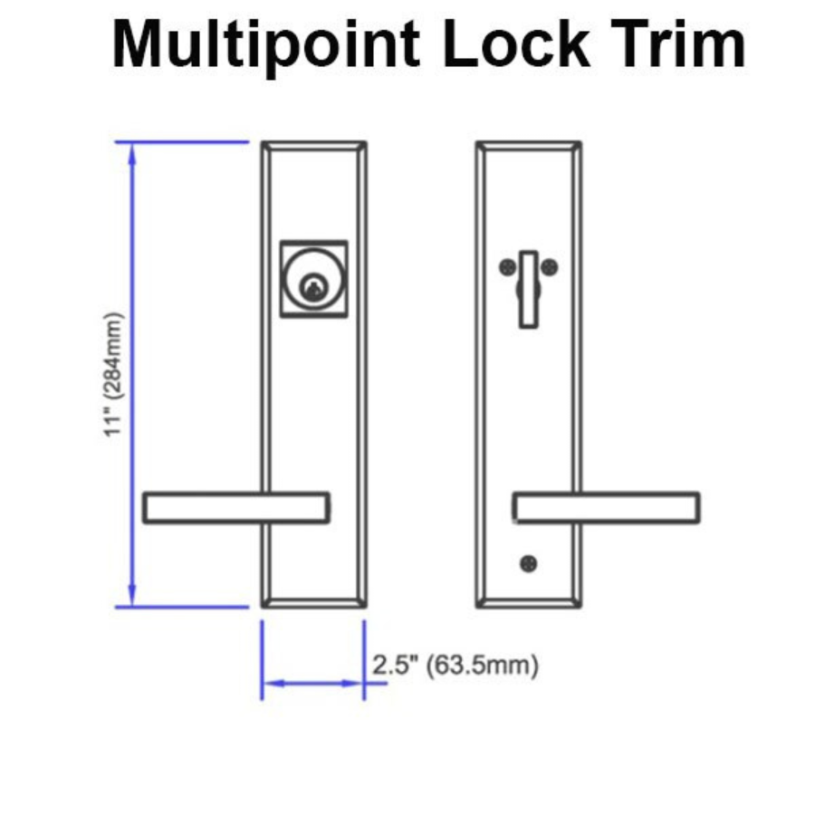 Premium multipoint handleset for use with triple latch, deadlocking tongue and shootbolt bolt multipoint locks